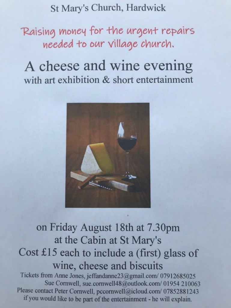 Friday 18 August 7:30pm, Cheese and Wine Fundraiser in the Cabin