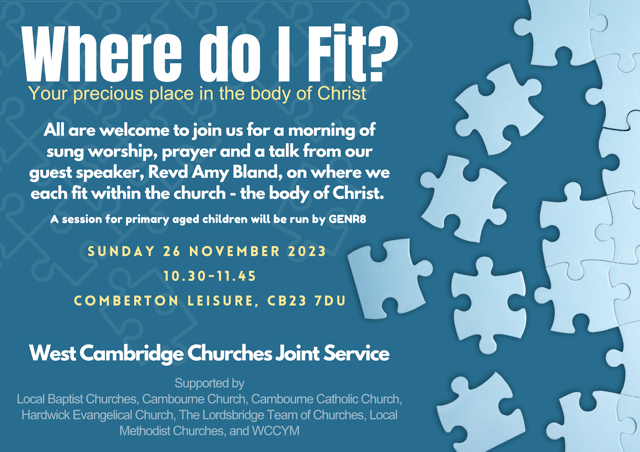 10:30am Comberton Leisure Centre, West Cambridge Churches joint service for Christ the King, followed by refreshments, and an opportunity to say goodbye to our Team Rector, Revd David, before he leaves for his new role at the end of December.