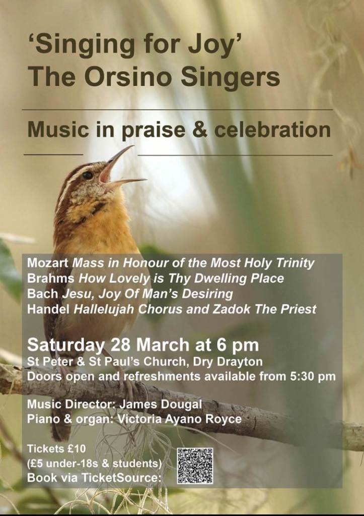 Sarah Rittman is organising a choir for the installation of our new Team Rector, Revd Clare Coates, at All Saints’ Haslingfield at 7pm on Thursday 19th March. The choir will be singing Rutter’s Gaelic Blessing as well as the hymns. There will be a rehearsal beforehand and at another time TBC as soon as possible!